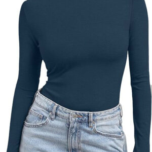 Half Turtleneck Long-Sleeve Stretchy Shirt...